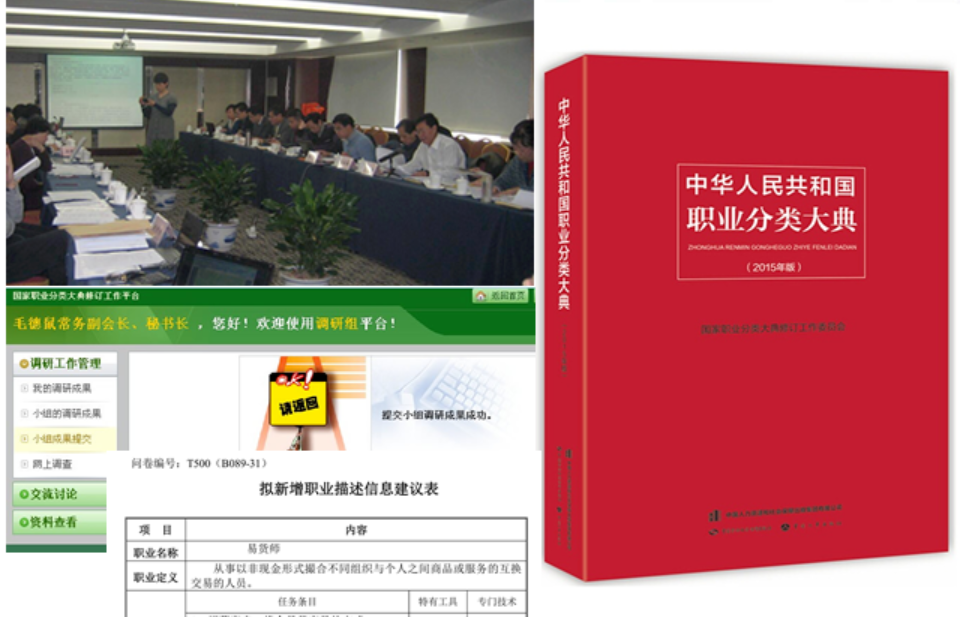 2010年12月,《中华人民共和国职业分类大典》修订工作启动。2011年8月3日,由中国商业联合会主办的商业服务业国家职业分类大典修订工作启动会议在北京召开。中国旧货业协会库存折扣商品专业委员会作为中国商业联合会代管的协会之一参加会议。毛德鼠会长被中国商业联合会聘为商业服务业国家职业分类大典修订工作委员会专家委员。在毛会长带领下,秘书处结合行业发展需求,进行了深入市场调研,从拟新增职业的社会需求、从业人群、特定知识体系、技能要求、稳定性与价值性、与国际接轨的需要等方面阐述了易货师新职业的必要性,提交《拟新增职业描述信息建议表》,提出增加“易货师”新职业,建议放在国家职业分类大典的第四大类、**中类的“贸易经纪代理人员”小类下。毛会长在参加人社部召开的职业信息评审会上为“易货师”新职业积极发声。